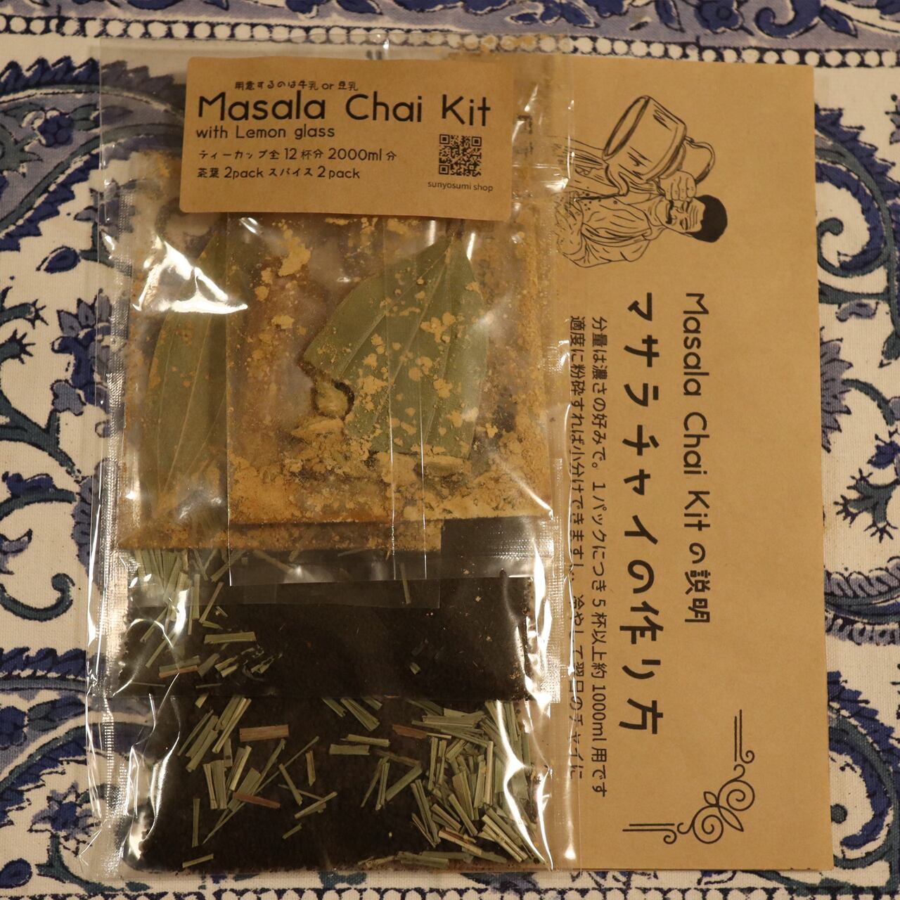 本格的な香り高いマサラチャイの味を手軽に楽しめるキットです。従来と違うのはレモングラス入りで容量が2倍増量となりました。丁寧な作り方付き。牛乳または豆乳さえあれば、面倒なスパイスの調合が必要ありません。濃さのお好みにより1パックにつき1000ml ~1200ml用をスパイスと茶葉セットで2pack。ティーカップなら全10杯から12杯(1セット分は5~6杯分)。レモングラス入りなので清涼感もあり、『さんよすみ』の独自の配合をお楽しみください。